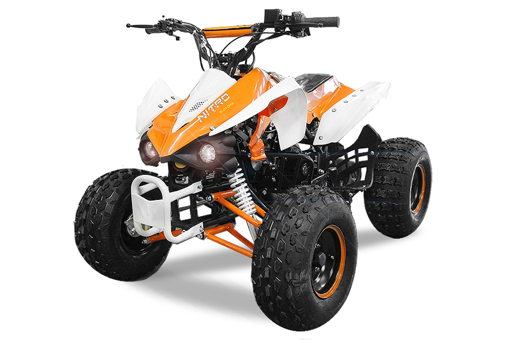 Besonderheiten | Extras: - Trommelbremse vorne + Hydraulik Scheibenbremse hinten - Doppelsportauspuff - Not Aus Leine am Heck - Gepäckträger hinten - Gang Anzeige - 3 Gang Semi-Automatik + Rückwärtsgang - Ladegerät, Ladebuchse am Quad - Alarm-Anlage mit 2x Fernbedienung (Starten & Ausschalten via Fernbedienung) - 8" Zoll Reifen - Daumengas drosselbar - Kaltstarter am Lenker - Scheinwerfer + Rücklicht
